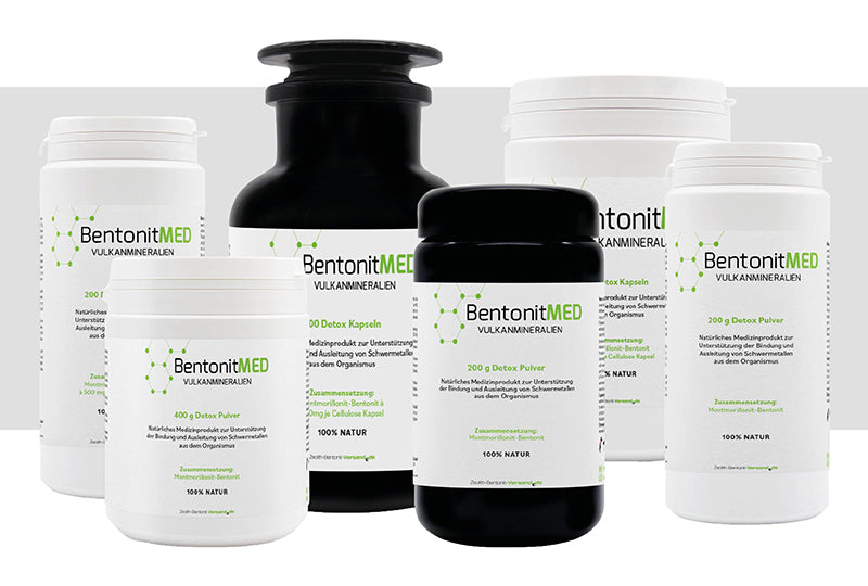 The range in this zeolite shop includes the natural volcanic minerals zeolite and bentonite as well as both mixed as ZeoBent: from the small 60g or 200g trial pack to the economy pack and our Tasting sets. The tasting sets make it possible to test the different minerals individually. Each set contains a small can of ZeolithMED, BentonitMED and ZeoBentMED powder or powder ultrafine. In our zeolite shop you will find powders, ultra-fine powders and capsules in plasticizer-free cans and Miron violet glasses, as well as zeolite skin cream and toothpaste. Order your minerals for detoxification either online, or use our telephone hotline, which is open Monday to Thursday from 09:00 - 12:00 / 12:30 - 16:30 and Friday from 09:00 - 12:00.