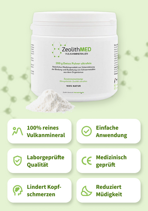 ZeolithMED polvo detox ultrafino 200g, producto sanitario con certificado CE